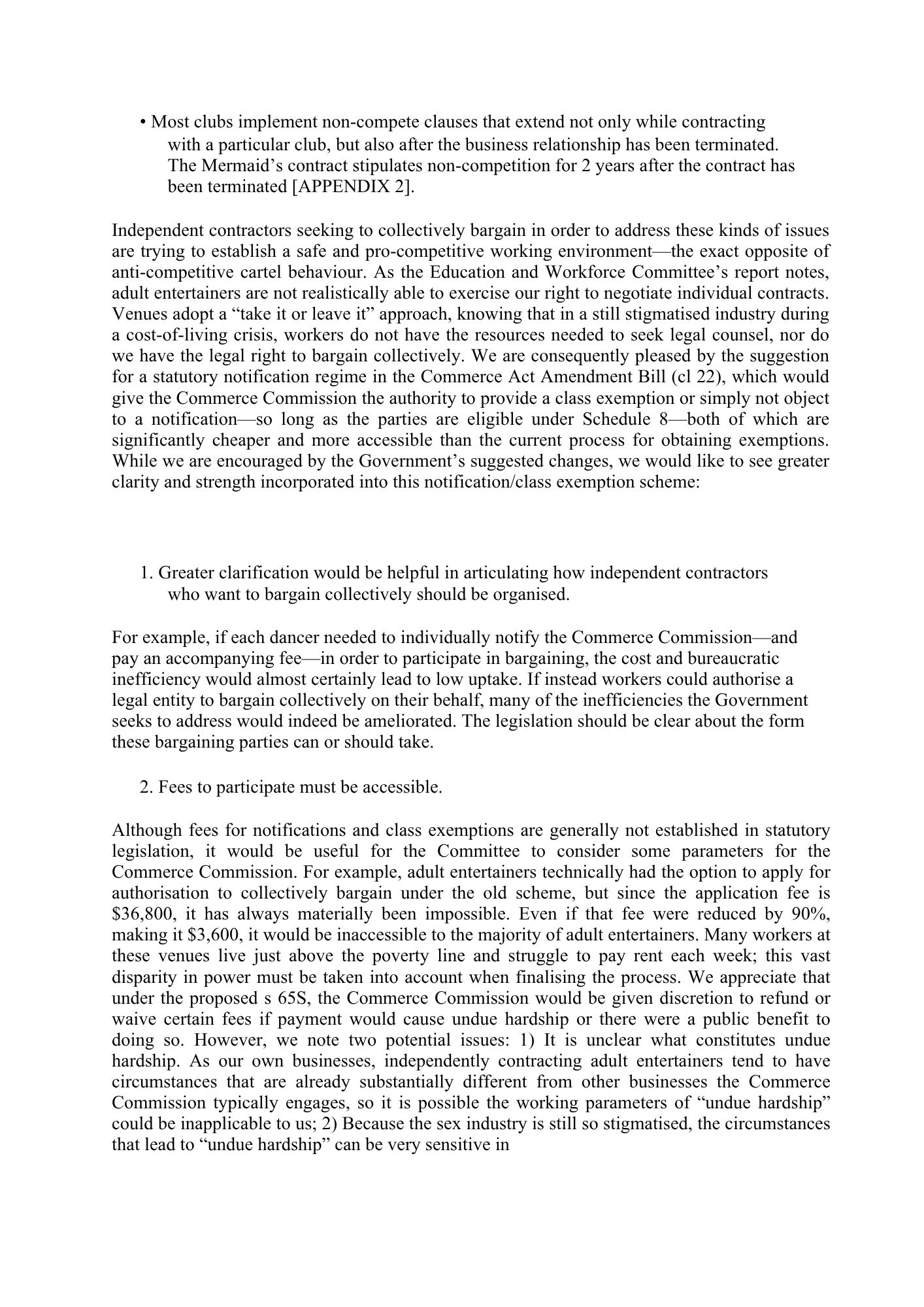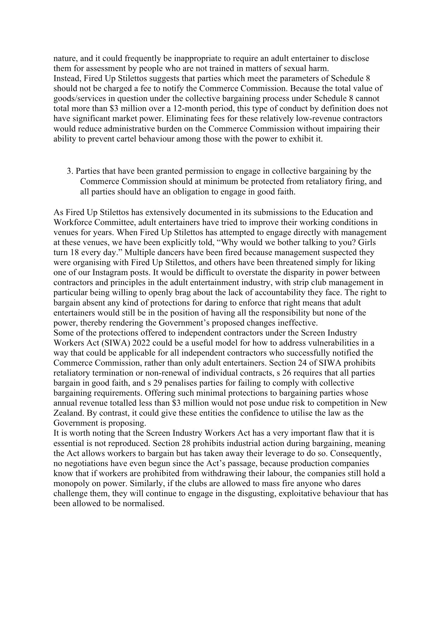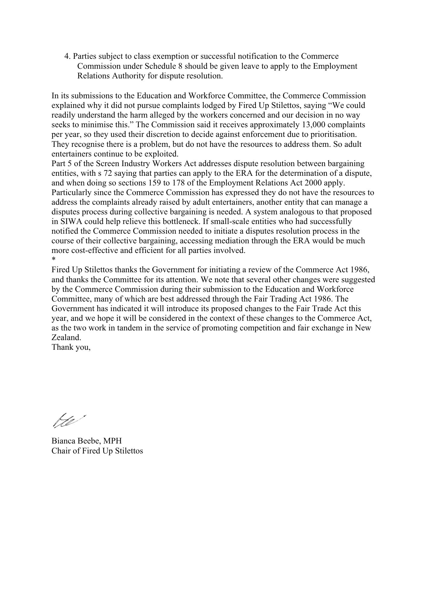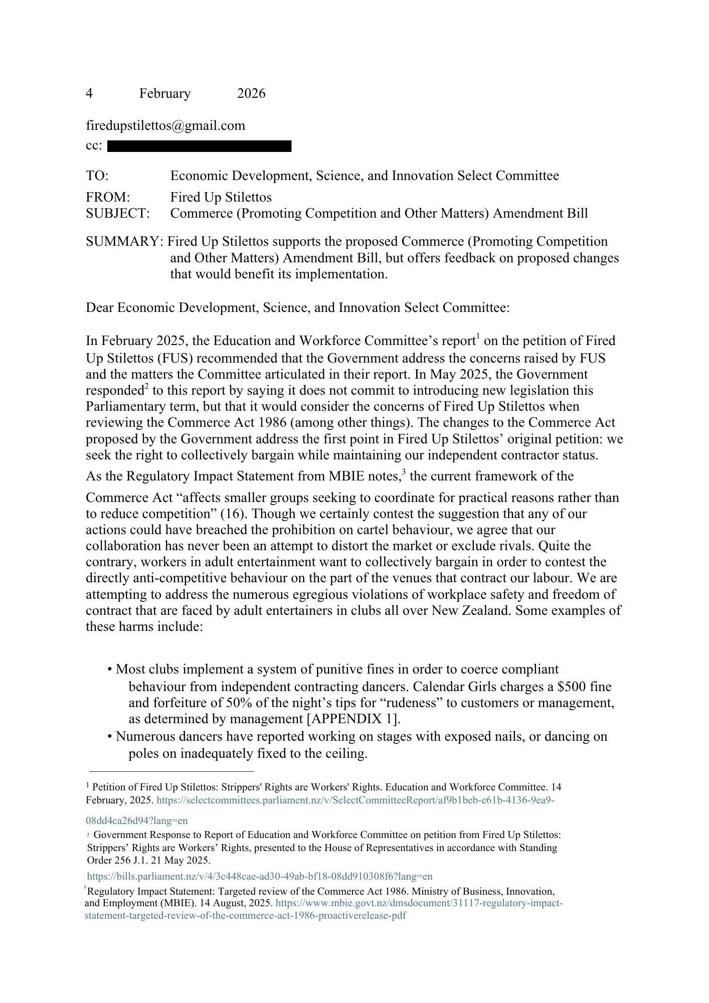 Fired Up Stilettos Submission on the Commerce Act Amendment Bill